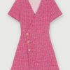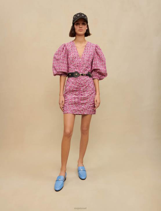 סטודיו maje עיצב הדפס פרחוני רענן ונוצץ לעונה החדשה. לשמלה הקצרה הזו עם הקווים הנשיים שלה יש צווארון V ושרוולים עשירים, אסוף בעדינות באורך שלושת רבעי.