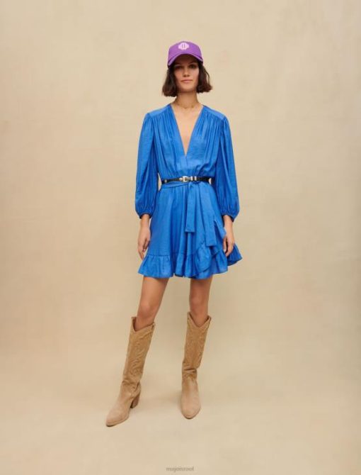 Maje נשים שמלה קצרה עם סלסולים כְּחוֹל הַלבָּשָׁה P8N8301