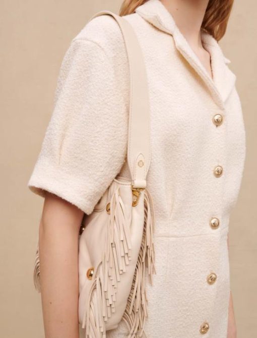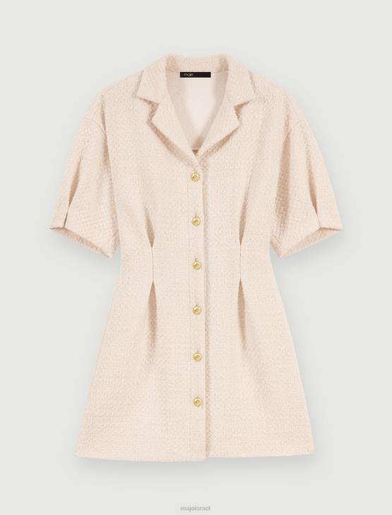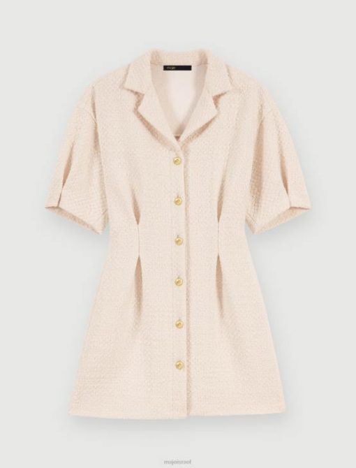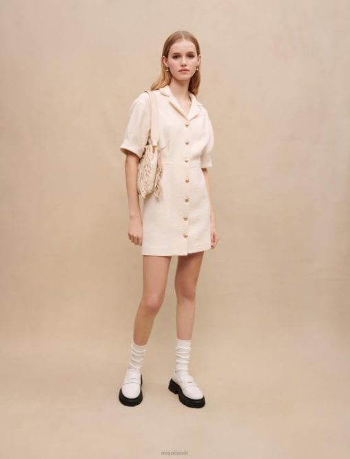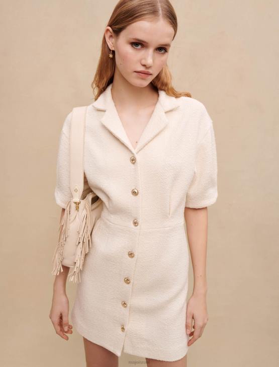 Maje נשים שמלת טוויד מכופתרת לבנה אקרו הַלבָּשָׁה P8N8185