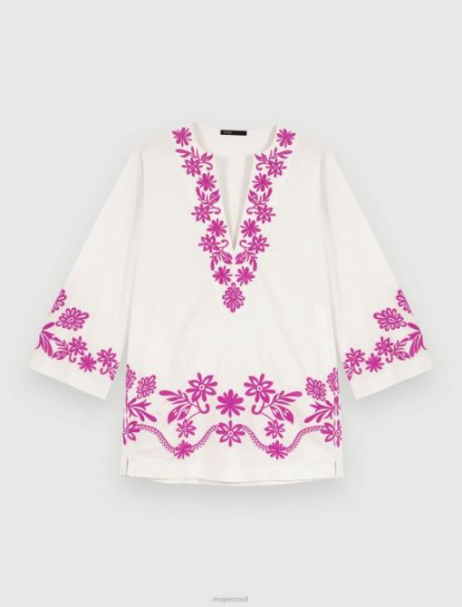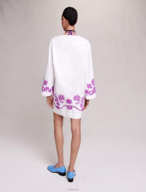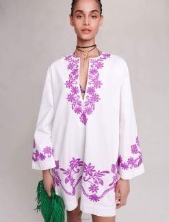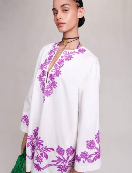 שמלת טוניקת כותנה בגזרה רחבה זו עם שרוולים ארוכים וצווארון הנלי עמוק יוצרת צללית צפה. הוא רקום בעדינות עם מוטיבים פרחוניים מנוגדים בגב, לאורך השרוולים ומסביב לחלק התחתון, ומבטיח מראה קיץ צבעוני. פריט מפתח העונה, לבש אותו ביום מעל בגדי ים או בערב עם סנדלים. שחקו את קלף הצבעים על ידי הוספת אביזרי הצהרה, כגון תיק או תכשיטים משיתוף הפעולה Maje x Eliou.