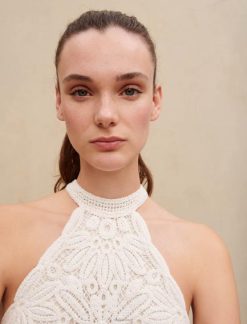 סריגים פוגשים בדים צפים: Maje חושפת את הקפסולה הייחודית של ”סגול טרופי”, שעוצבה כהזמנה לטיול. דפוסי פייזלי ופרחים יוצרים שילובים נועזים ומציעים שפע של אפשרויות, לצללית קיץ קלילה עמוסה באופי. שמלת מידי זו עשויה כולה מכותנה, בתחרה סרוגה פתוחה. הוא כולל מוטיבים פרחוניים רקומים שקופים וגזרה מסולסלת בתחתית. יש לו בטנה קצרה. החלק העליון, עם אפקט הגב החשוף שלו, חושף את הכתפיים ובעל גזרה בולטת בקו הצוואר. את החומר הזה תמצאו גם על החצאית או החלק העליון התואמים. הוסף מגע של צבע על ידי הדגשת השמלה הזו עם תכשיטים משיתוף הפעולה האקסקלוסיבי Maje x Eliou.
