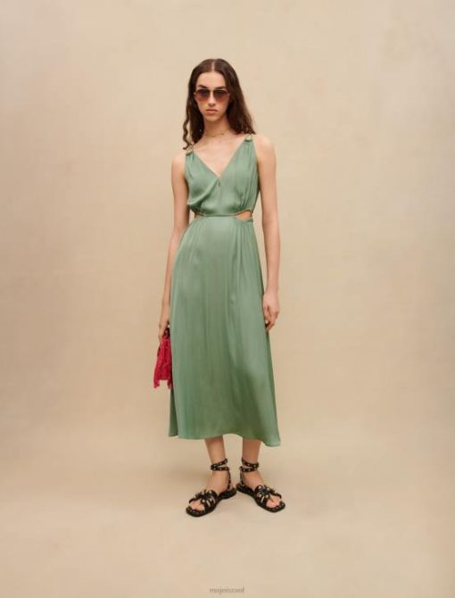 שמלת סאטן זו היא סגנון קל משקל ואלגנטי עם קו צוואר צונח, קשירה על הכתפיים וגזרות צד. עם סנדלים שטוחים במהלך היום, ניתן לשלב אותו גם עם עקבים וקלאץ’ למראה ערב אלגנטי.