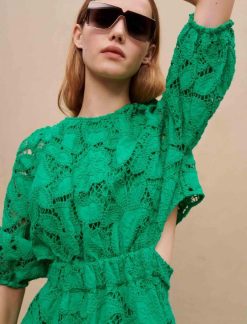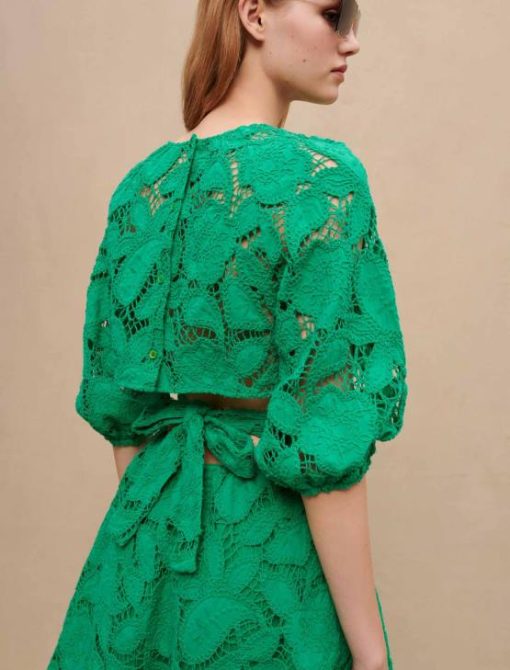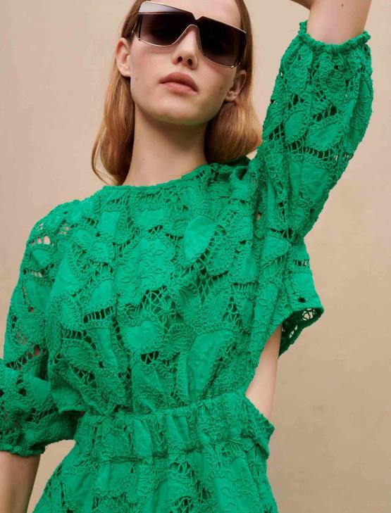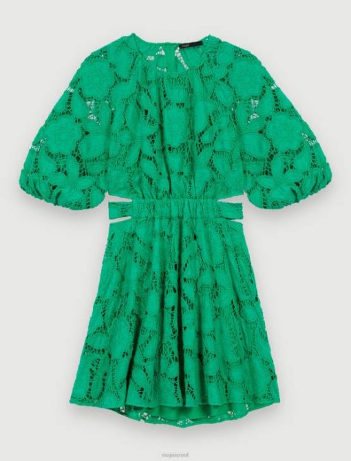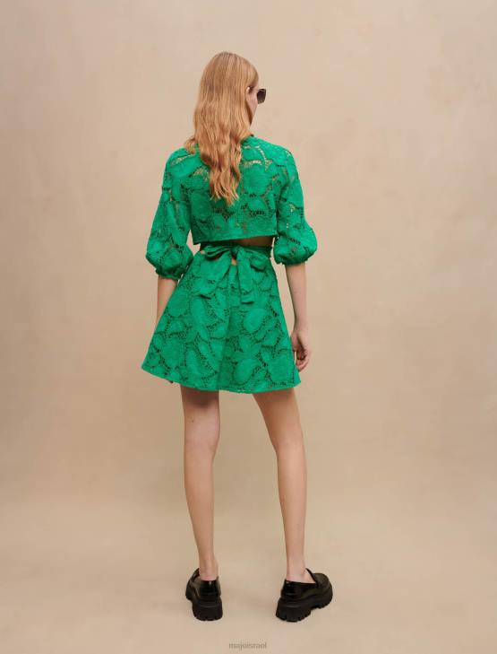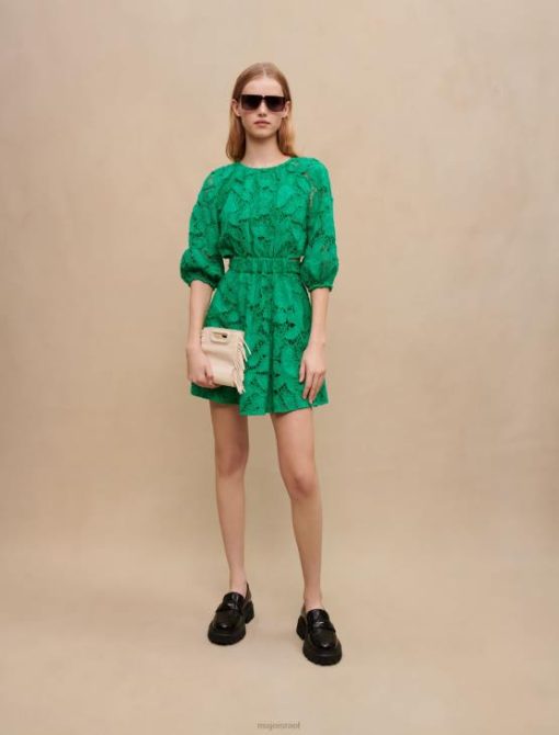 Maje נשים שמלת מיני כותנה רקומה ירוק הַלבָּשָׁה P8N8180