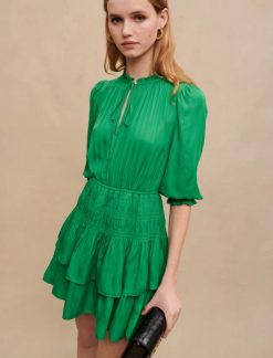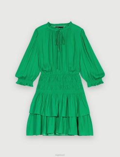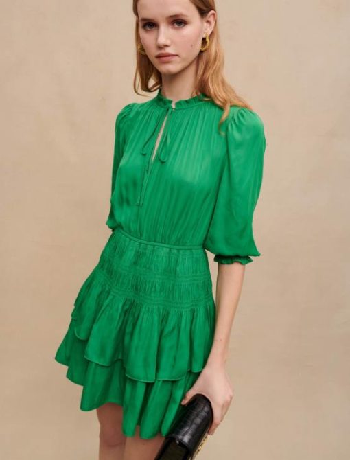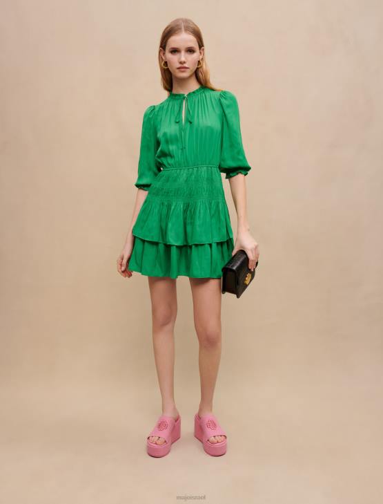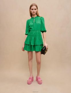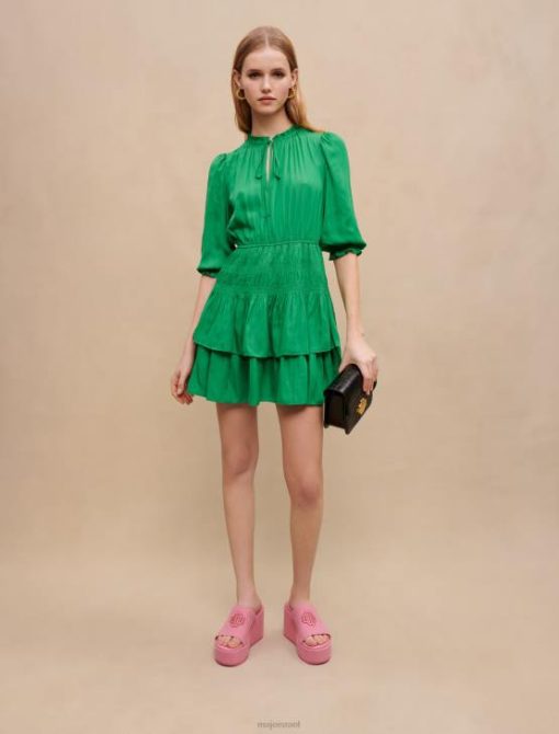 Maje נשים שמלת מיני מפוצצת ירוק אזמרגד הַלבָּשָׁה P8N8181