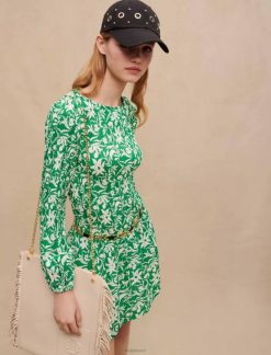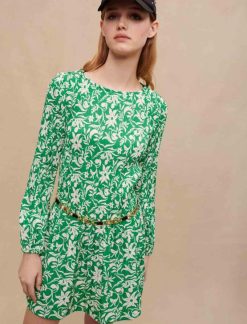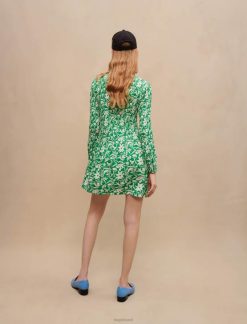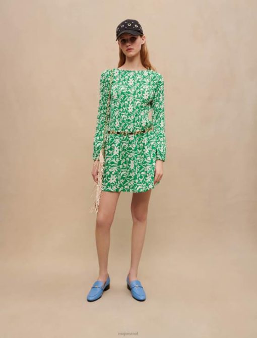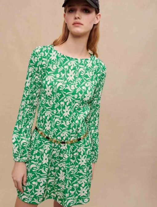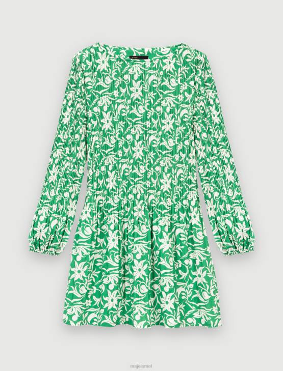 שמלת הקפלים הזו מאמצת פסים נוצצים והדפס חלומי. מעט מתרחב בשולי, יש לו צווארון סירה ושרוולים ארוכים.