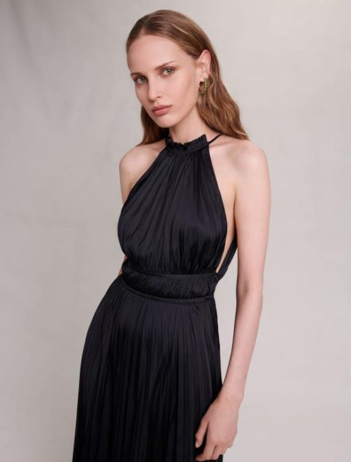 חקור את הקולקציה החדשה שלנו בהשראת העולם האורבני התוסס. בגדים רשמיים נצחיים הומצאו מחדש עם מראה נועז ורוקיסט. שמלת מקסי מצנח סאטן מושלמת לכל אירוע, מושלמת ליום או ללילה. עם צווארון עגול עם חורי זרועות בסגנון אמריקאי, חצאית הקפלים המתרחבת שלו יוצרת מראה קל משקל ואוורירי. זה מאוד שיקי, מציג את העור ומצייר את המותניים הודות לקשרים מאחור.