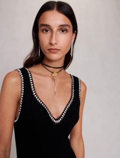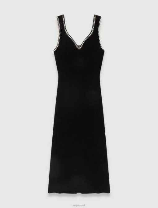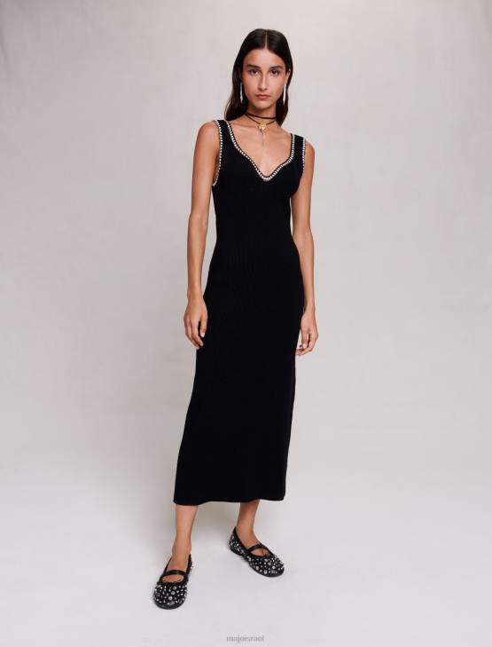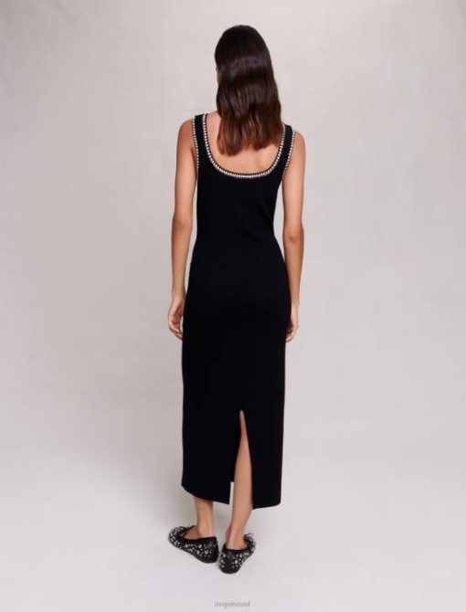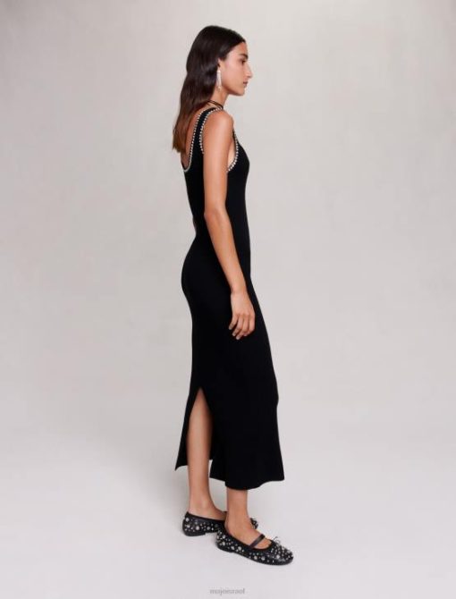 Maje נשים שמלת מקסי סרוגה שָׁחוֹר הַלבָּשָׁה P8N890