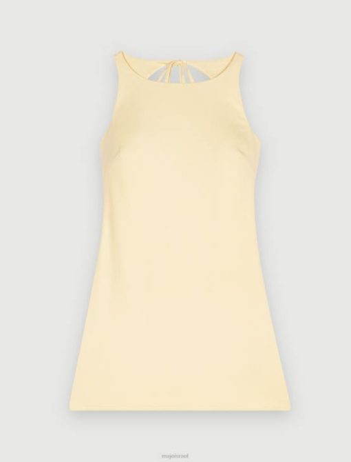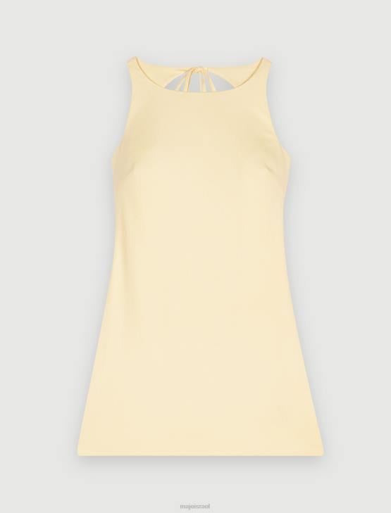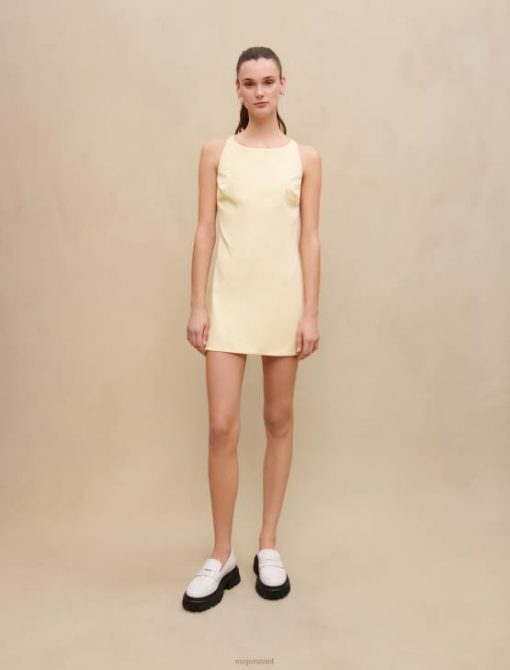 השמלה האלגנטית הזו בגזרה ישרה בנויה עם קו צוואר אפקט גל. ללא שרוולים ובהשראת שנות השבעים, הוא מאמץ גוון פסטל מדהים שנמצא מאוד בעונה הזו. החליקו אותו מתחת לז’קט ג’ינס במהלך היום ואבזר אותו בסנדלים אלגנטיים בערב.
