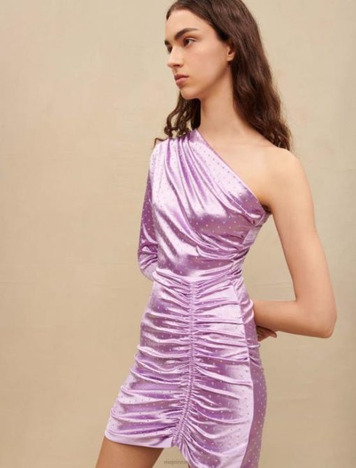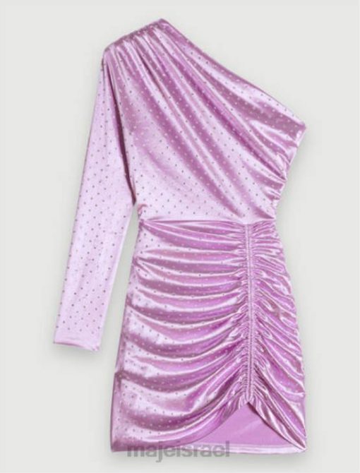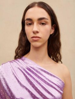 השמלה המבריקה והסאטן הזו תגרום לכולם לדבר. הוא א-סימטרי, עם שרוול אחד וכתף אחת חשופה. קשירה על המכפלת מאפשרת לך ליצור כינוסים ושסע בחצאית.