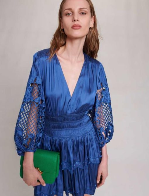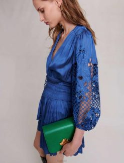 Maje נשים שמלת סאטן קצרה כְּחוֹל הַלבָּשָׁה P8N844
