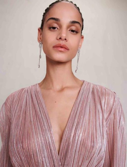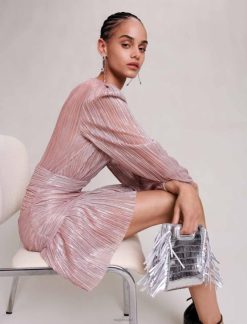 שמלה זו עם שרוולים ארוכים, מבריקה ומכוסה בעדינות, תמשוך את האור ותבטיח מראה מסוגנן וקל משקל.