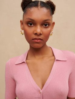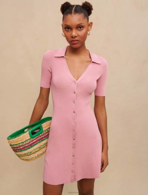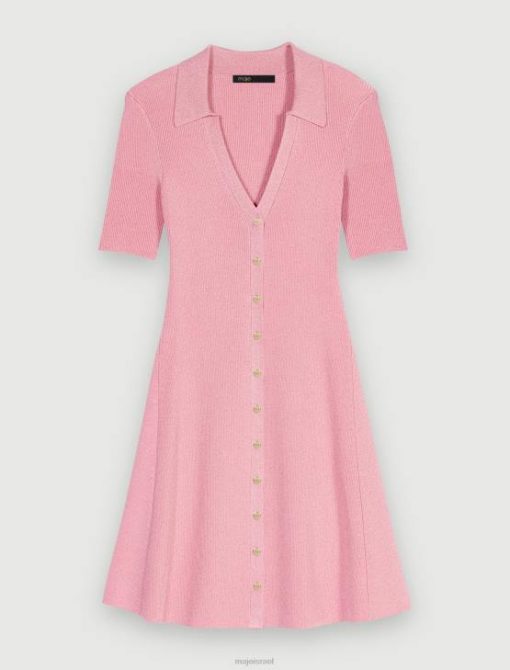 Maje נשים שמלת סריג מצולעת נוצצת ורוד חיוור הַלבָּשָׁה P8N82