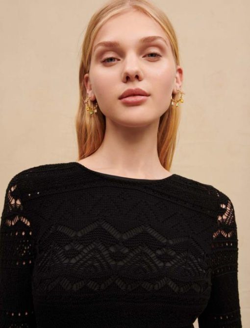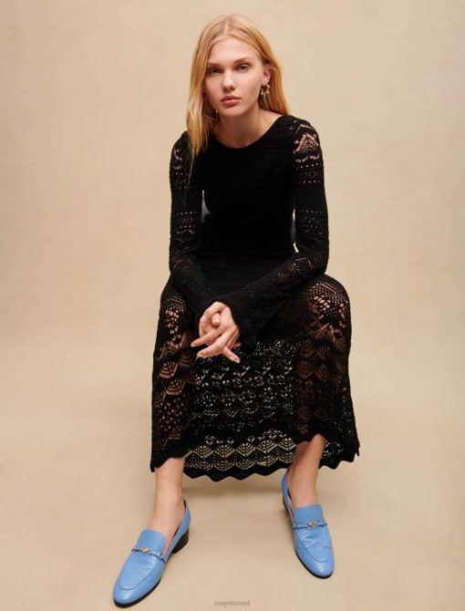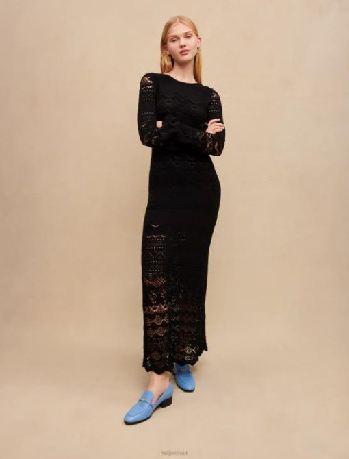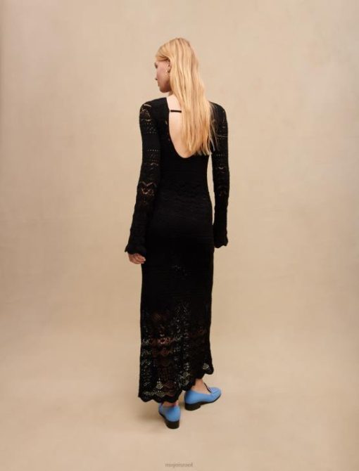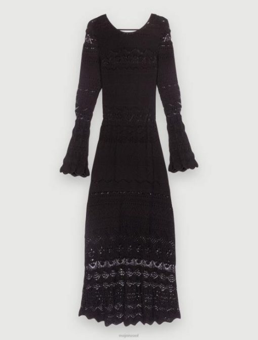 Maje נשים שמלת סריג פתוחה ארוכה שָׁחוֹר הַלבָּשָׁה P8N8266