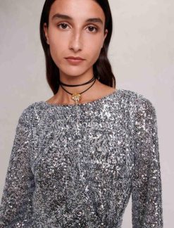 Maje נשים שמלת פאייטים כסף הַלבָּשָׁה P8N824