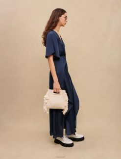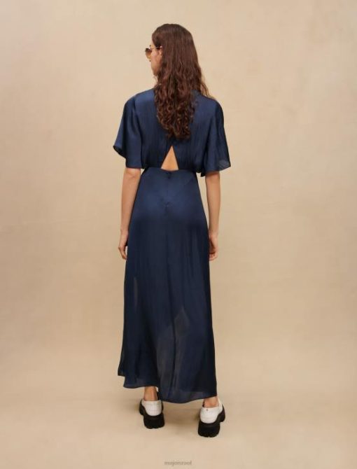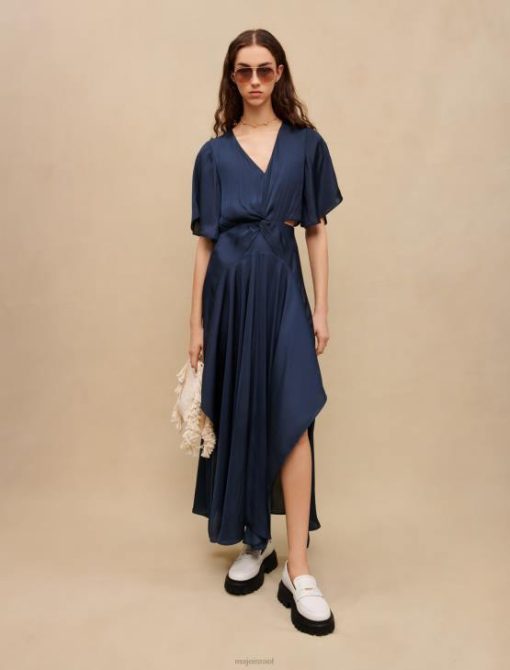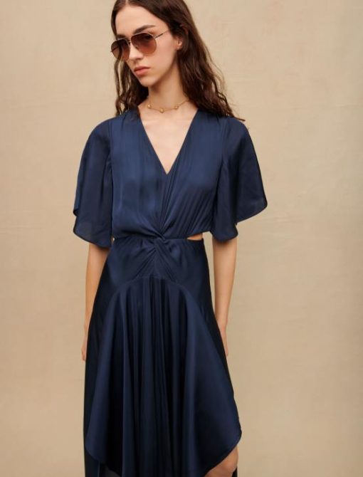 Maje נשים שמלת צעיף סאטן זורמת חיל הים הַלבָּשָׁה P8N8110