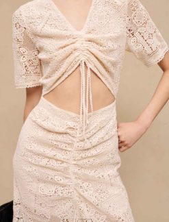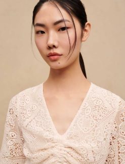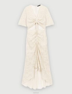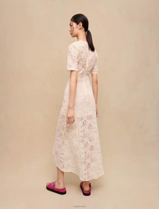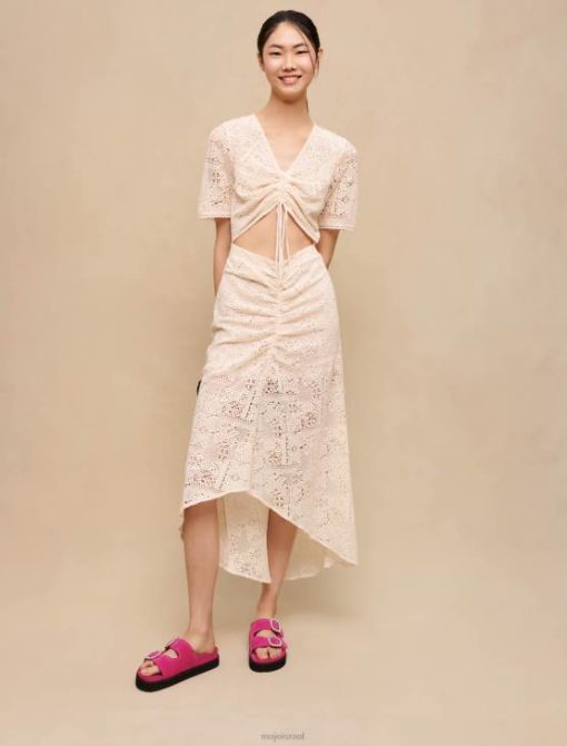 בעונה הנוכחית, Maje מביאה קורטוב חדש של סגנון וקלילות לשמלות קיץ חובה ויצרה חלקים שיכולים לקחת אותך מהעיר לחוף, ולהגדיל את האפשרויות שלך למראה. שמלת הסרוגה הזו באורך בינוני מוטיבים שקופים. הוא נותן אשליה של טופ וחצאית, לאפקט טרמפ ל’איל המושלם. עם צווארון V ושרוולים קצרים, יש לו חתך בחזית שבו אתה יכול לחשוף כמה או מעט מהבטן כמוך משאלה הודות לקשרים מתכווננים. החצאית הא-סימטרית המרופדת בעלת בטנה קצרה. אביזר שמלת קיץ קלה ורומנטית זו עם תיק סל וסנדלים ביום או קלאץ’ ונעלי עקב בלילה.