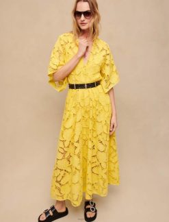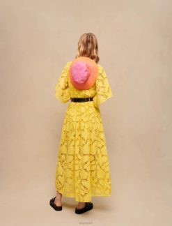 לקיץ Maje מבטיחה קלילות בשילוב עם צבעים מרהיבים ונפחים נועזים. שמלת הכותנה הארוכה והאוורירית הזו כוללת מוטיבים פרחוניים פתוחים עדינים. עם שרוולים קצרים רפויים וצווארון צונח, היא מצוידת במותן ויש לה חצאית נפח רק חושף את הקרסוליים. הוסף חגורה כדי להדגיש את המותניים ושחק עם הסגנונות והחומרים המנוגדים שלה. גם קלילה וגם אלגנטית, השמלה הזו מעניקה מבנה לצללית ותראה נהדר עם כובע וזוג סנדלים לאורך כל הקיץ.