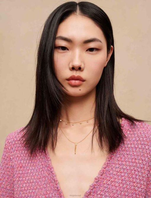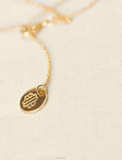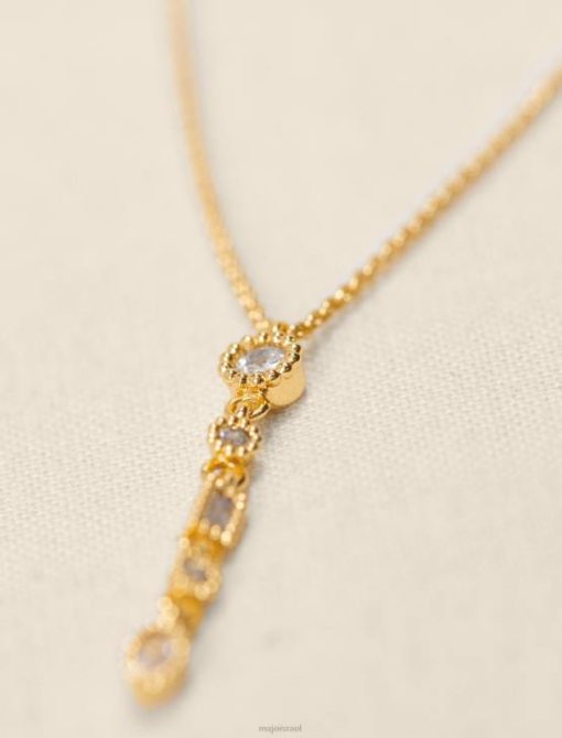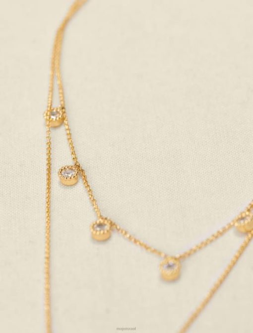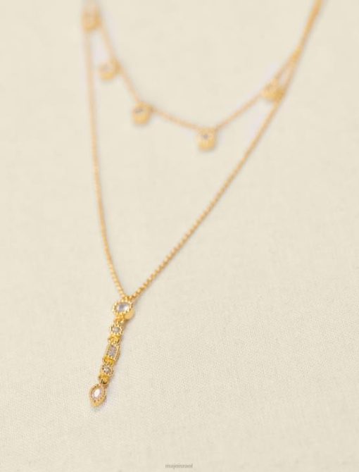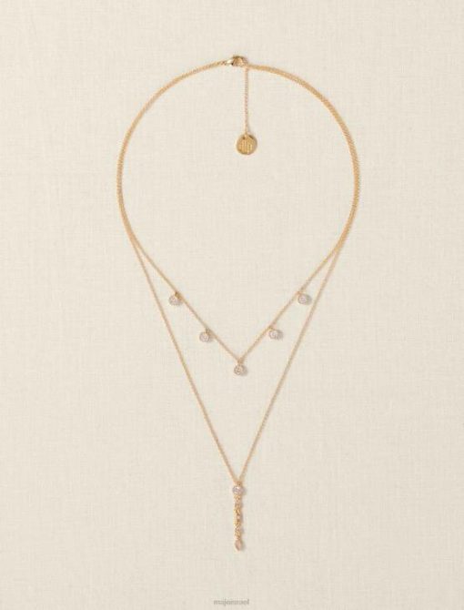 שרשרת פליז כפולה עדינה מאוד זו תלביש את הצוואר שלך. הוא מורכב ממחרוזת ושרשרת תליון שניהם משובצים ב-5 אבני זכוכית.
