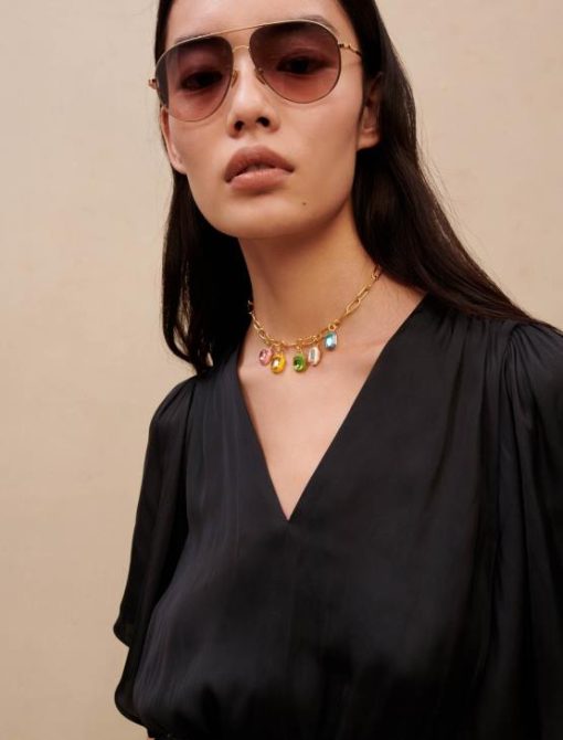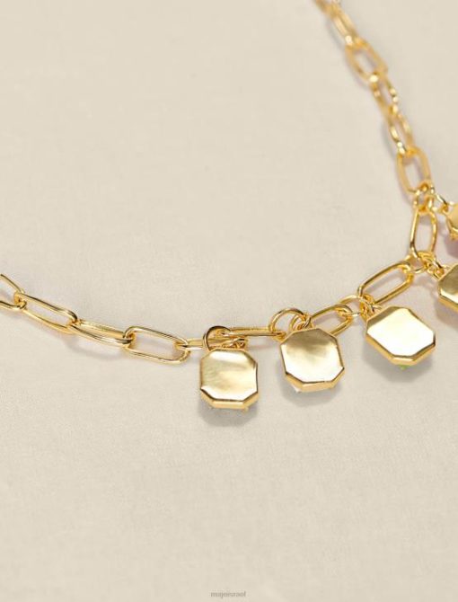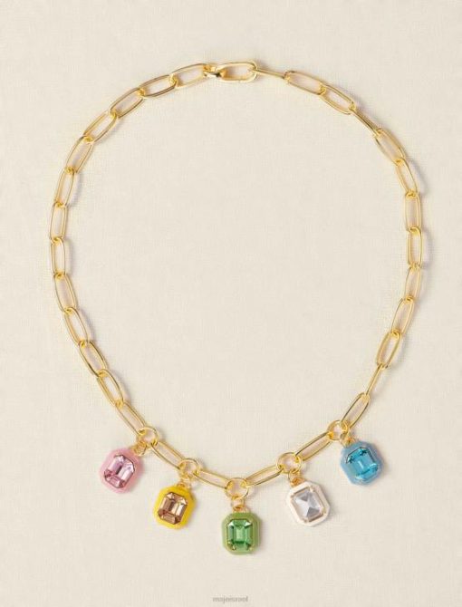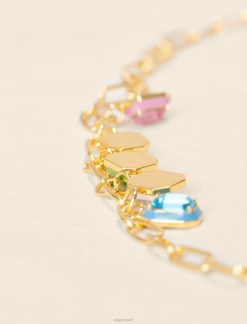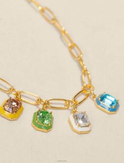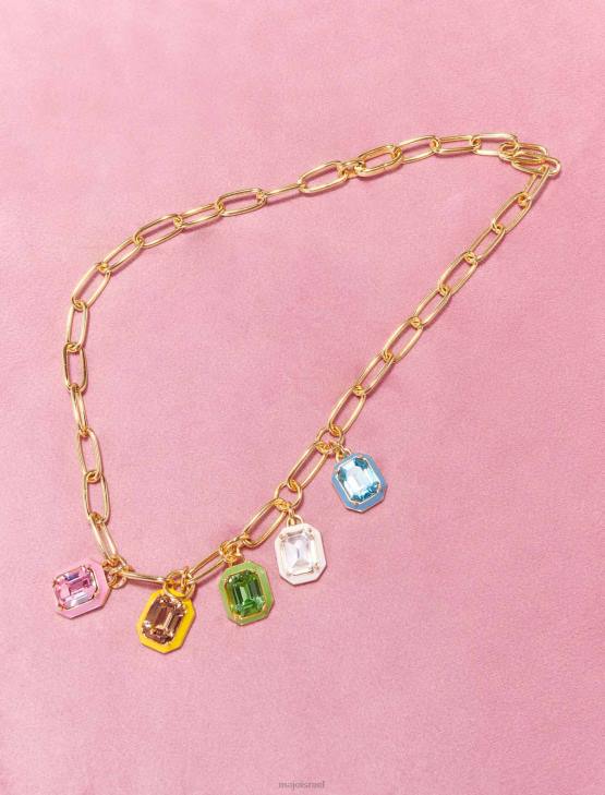 שרשרת זו המורכבת משרשרת אליפסה גדולה עשויה פליז ממוחזר מצופה זהב, מתוגברת על ידי 5 תליוני אמייל צבעוניים עם אבנים עדינות. אתה תרגיש מחופש ברגע.