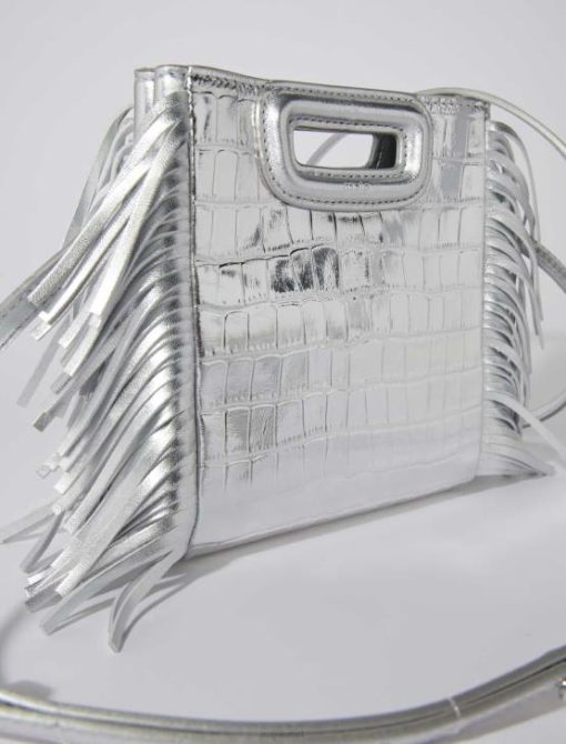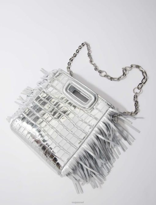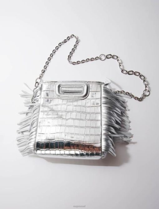 Maje נשים תיק מיני m מעור מובלט באפקט קרוק כסף אבזר P8N8450