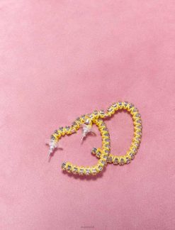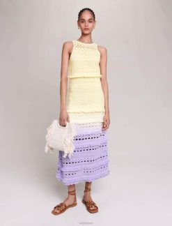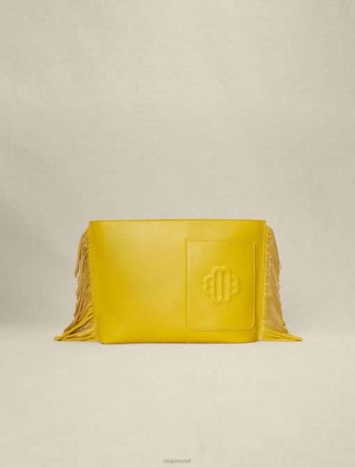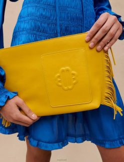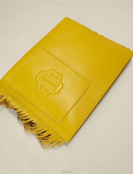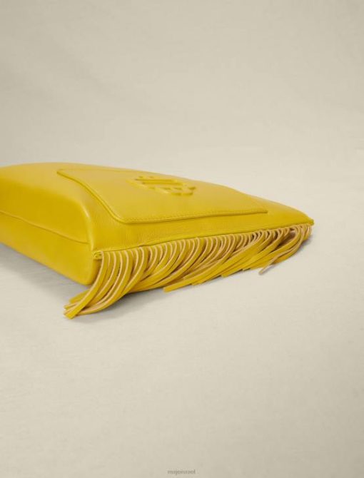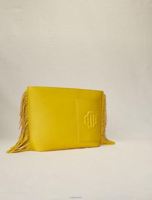 Maje נשים תיק קלאץ’ מעור עם שוליים צהוב אבזר P8N8475