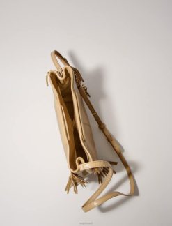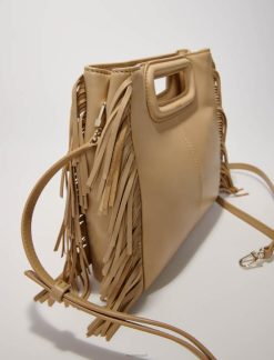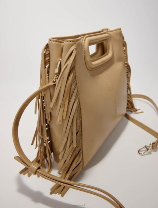 Maje נשים תיק m מעור חלק עם פרנזים בז’ אבזר P8N8453