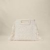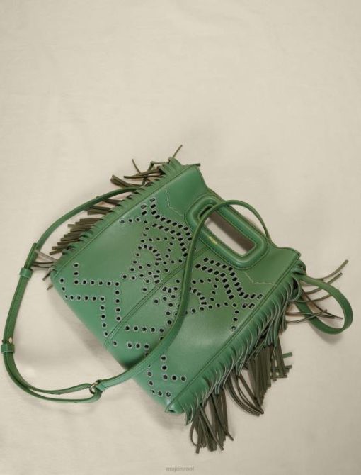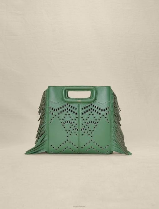 העונה, תיק maje m האייקוני זמין בעור מחורר בסגנון רקמה. הוא כולל שוליים בצדדים, ידית מכוסה, לוגו מוזהב מובלט וחתימה חרוטה על הווים. כמו גם הידוק מגנטי פרקטי שלו, הוא מציע רצועת כתף מתכווננת ונשלפת לאפשרויות נשיאה שונות: ביד, על הכתף או על פני הגוף.